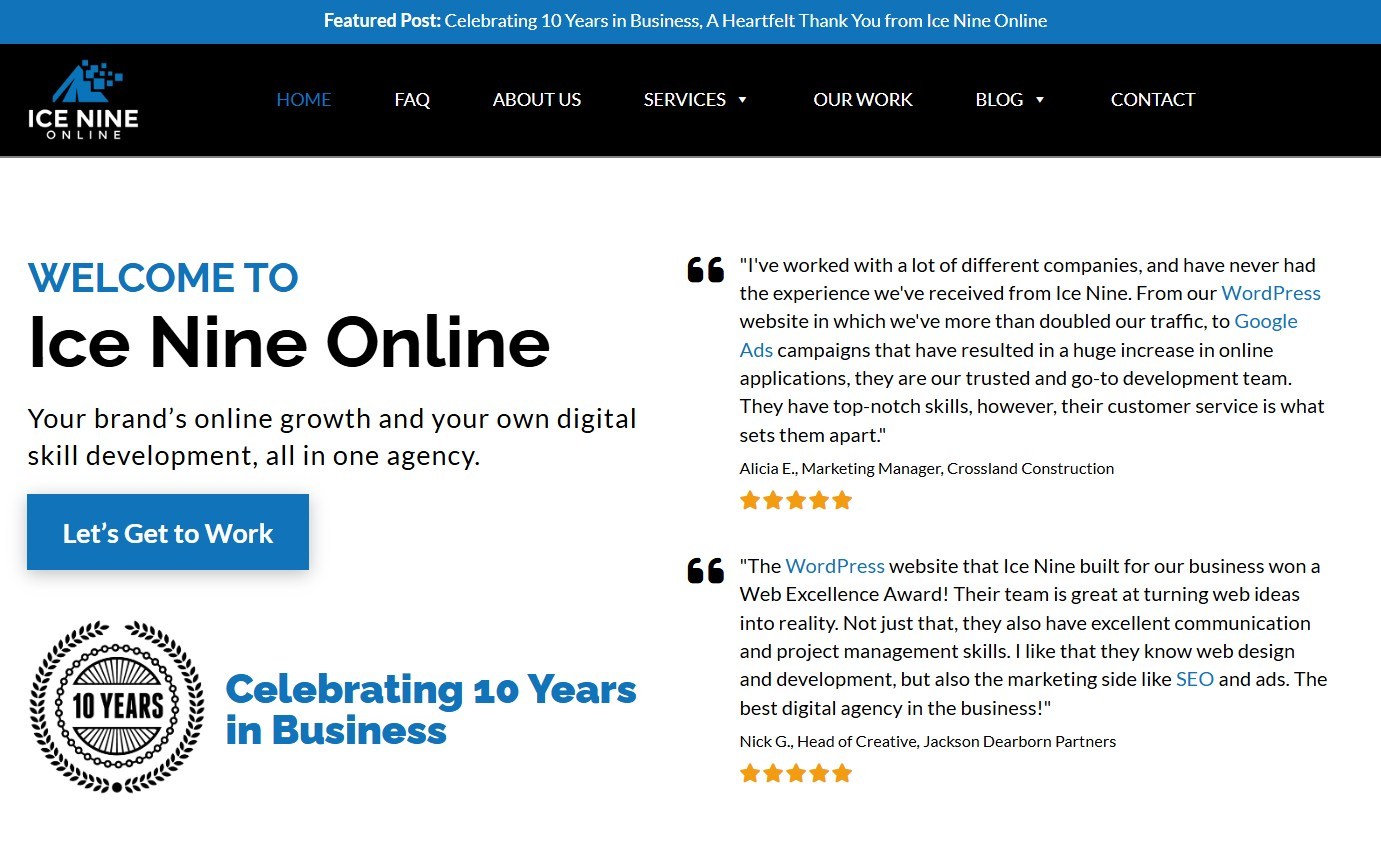 SEO sits at the core of Ice Nine Online’s work, supported by WordPress website development, paid online advertising, and hands-on training. The team emphasizes clear communication and practical execution, giving clients a better understanding of how search performance connects to real business outcomes.